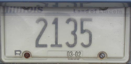 "T" sticker plate, indicates that the owner has renewed for 2002, but is still waiting for the new Illinois base plate with the same number to be produced.