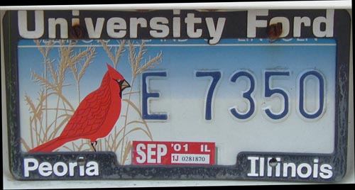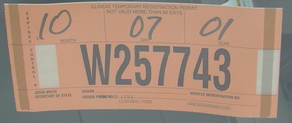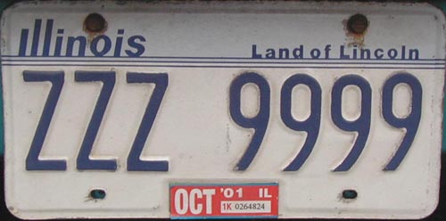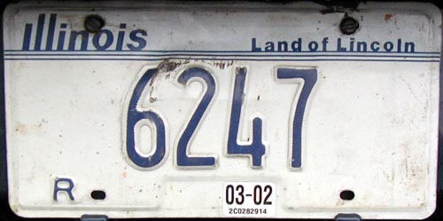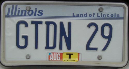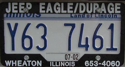 "T" sticker plate, indicates that the owner has renewed for 2002, but is still waiting for the new Illinois base plate with the same number to be produced.