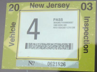 2003 Vehicle Inspection Sticker